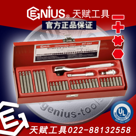 GENIUS天赋工具SC-233 Genius 5/16"寸系列33件套一字十字内星型内六角内6角螺丝批套装螺丝刀改锥起子组套装。