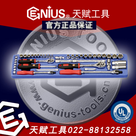 天赋工具1/4",3/8"系列44件套公制手动套筒扳手组套装TS-3244。 公制小飞大飞托盘系列套装,共含有44件手动公制工具。工具按特定的收纳槽摆放,工具托盘尺寸为530W×120D×50H,全套重量2400g。小飞和中飞棘轮扳手搭配万向扳手和常用规格套筒头,满足各类汽修和机修作业需求,具体包含如下: